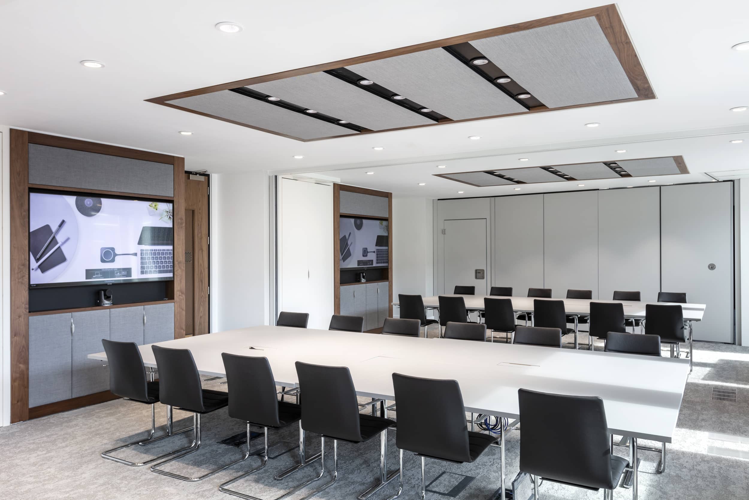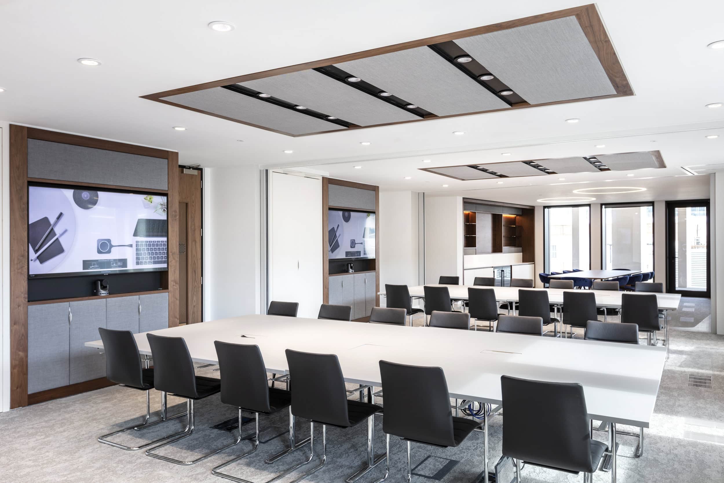 Designed impressive client meeting rooms with adaptable layouts, accommodating presentations and intimate gatherings.